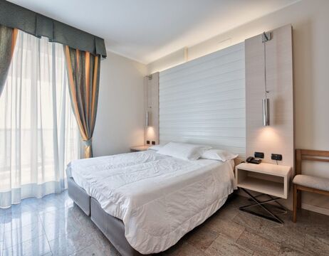 Luxuryzimmer mit Meerblick sind sehr modern eingerichtet (25 qm, im Hotelanbau von 2023 vom 7. - 10. Stock) mit Doppelbett und Einzelschlafsofa.