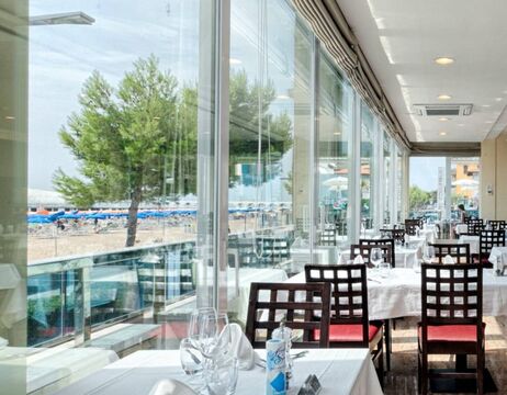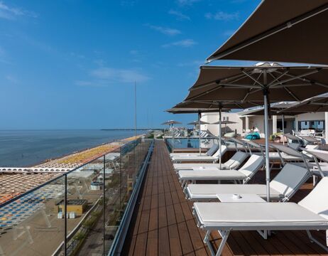 Superiorzimmer mit Meerblick verfügen zusätzlich über ein 2-Sitzer-Schlafsofa (21 qm) im linken Flügel des Hotels (BJ. 2013) Die Terrasse ist mit Tisch und Stühlen ausgestattet.