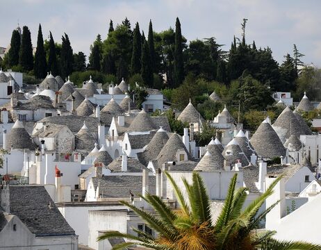 Fahrt nach Alberobello und Besichtigung der berühmten "Trulli". Diese einzigartigen runden Hirten- und Bauernhäuser aus weißem Trockenmauerwerk mit schwarzem Kegeldach bilden ein bemerkenswertes Stadtbild. Ein Bummel durch den Ort voller Rundbauten und schön gepflasterten Gassen ist sehr reizvoll, den man sich nicht entgehen lassen sollte.