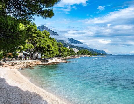 Die Umgebung strahlt mediterrane Leichtigkeit aus: duftende Pinien, glasklares Wasser und eine charmante Promenade mit Cafés und Bars laden zum Flanieren ein. Ob entspannter Strandtag, sportliche Aktivität oder ein Ausflug ins nahe Makarska – hier findet jeder seinen persönlichen Urlaubsmoment.