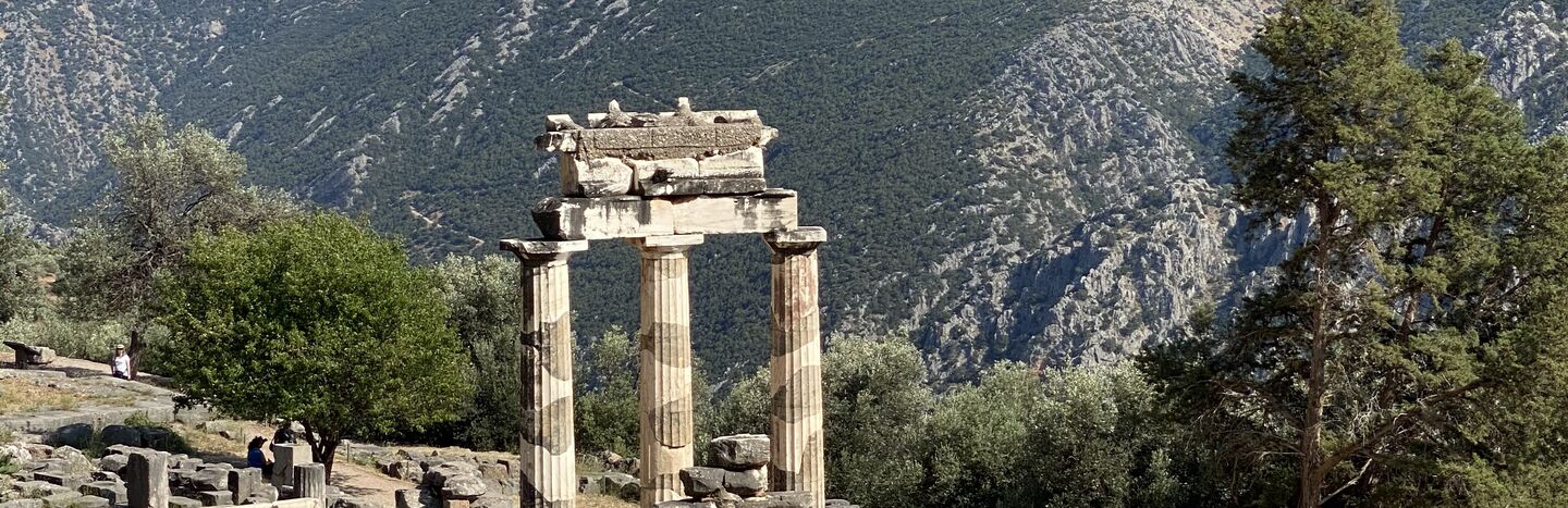 Korinth liegende, berühmte antike Orakelstätte Delphi.